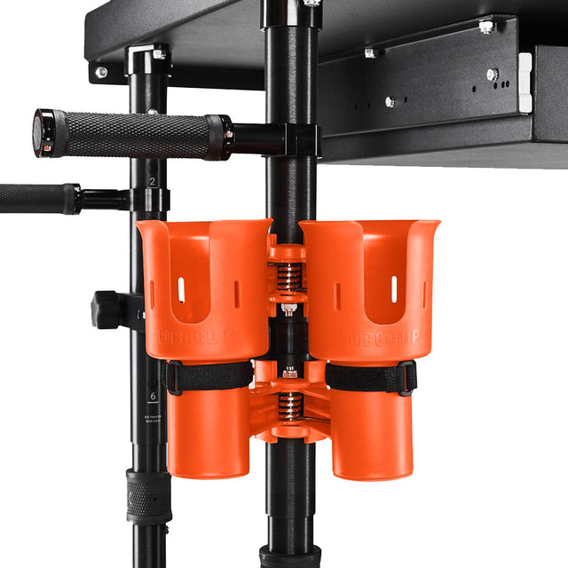The RoboCup is a patented portable clamp-on dual Cup Holder that securely holds two drinks, cups, phones, tools, and more.