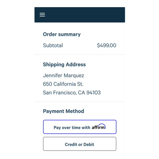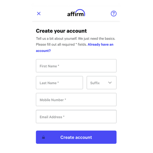 Select Affirm at checkout, then enter a few pieces of info for a real-time decision.