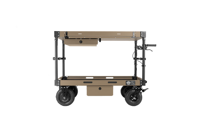 Motorized Fixed Height Partially-Collapsible Utility Cart is a heavy-duty, semi-collapsible mobile cart designed as the unifying component for critical gear and sensitive equipment up to 1,200 lbs. Uniquely crafted with mil-spec hardware and color coating, this tactical cart is capable of operating in tough conditions. It comes equipped with the Motorized Wheel System, Hydraulic Brake System, Power Distribution Plate, as well as Top and Bottom Locking Drawers.